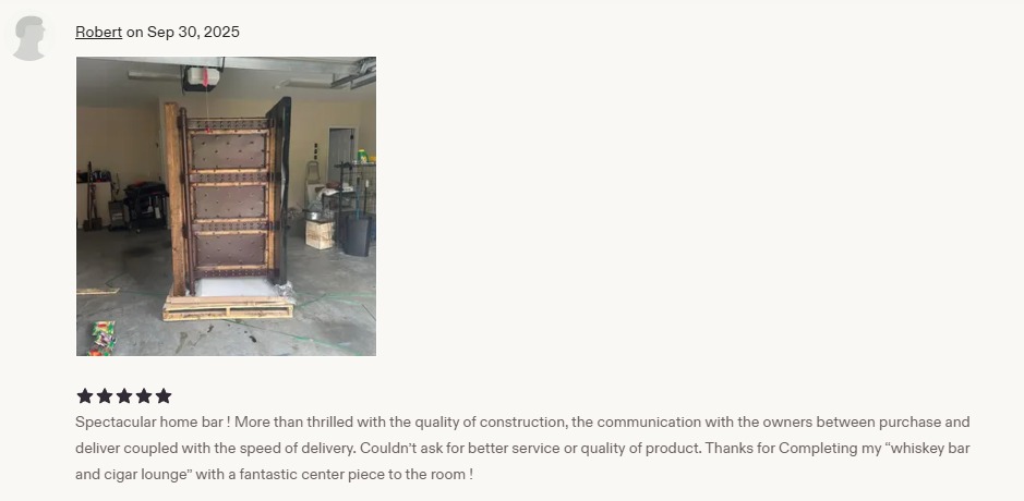 Each custom bar is individually crafted, finished by hand, and shipped to you from our team in Texas with the level of care a piece like this deserves.