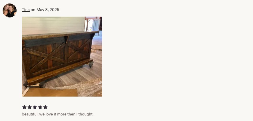 100% yes. You choose everything — size, finish, tone, storage layout, even hardware. Every custom bar is made to order from reclaimed wood and designed to match your exact needs.