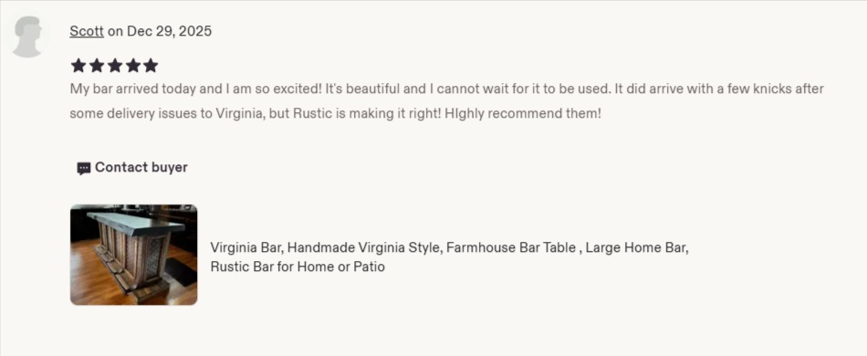 Most of our rustic bars are shipped fully assembled. Some designs may arrive in two sections due to size or require light final touches, but don’t worry — we provide simple instructions if needed. Our goal is to make the process as smooth and hassle-free as possible.